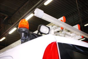 Tieturvallista työskentelyä varten löytyy hälytysmajakat, huomiomajakat, erilaisia työvaloja auton taakse ja sivuille.